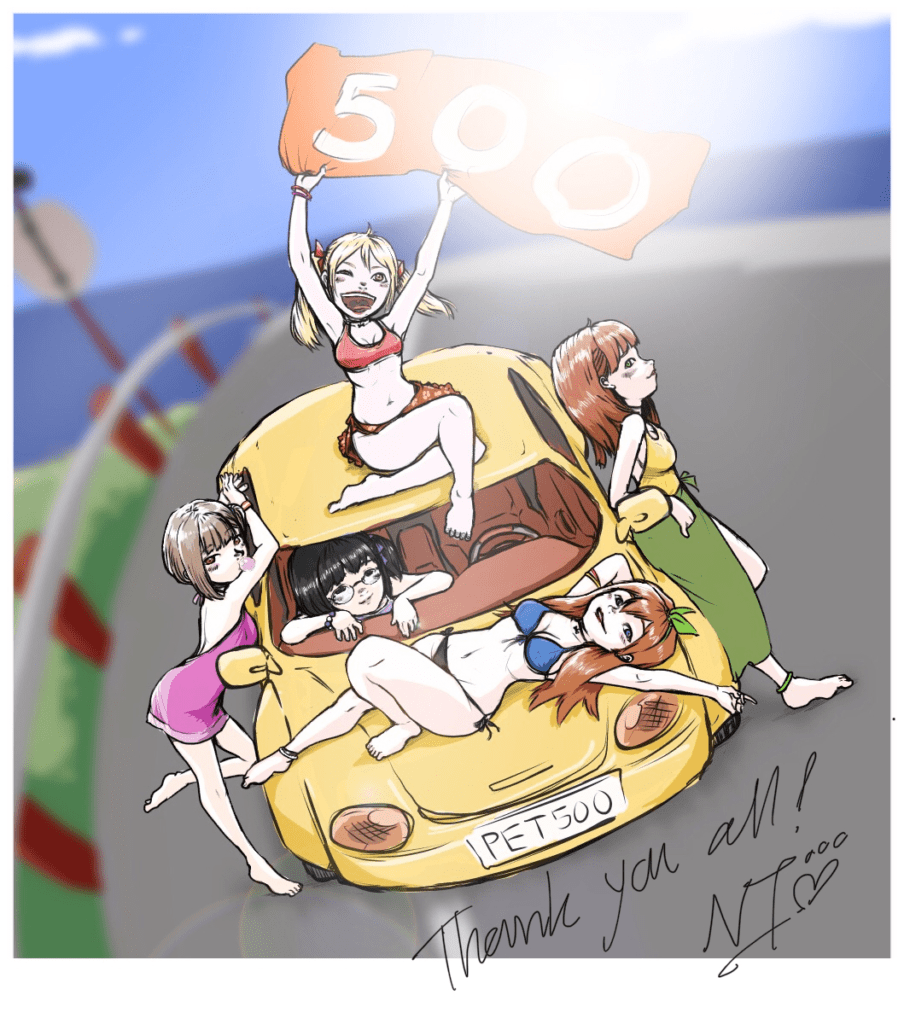 So, some of you who knew me from Pixiv might already saw this pic before. It’s a special SFW pic I made for back when we reached 500 followers over there, and I haven’t posted it anywhere else until now. The thing is, we are now close to reaching 600 and I have something prepared, so I figure I should share this pic here to my supporters^^