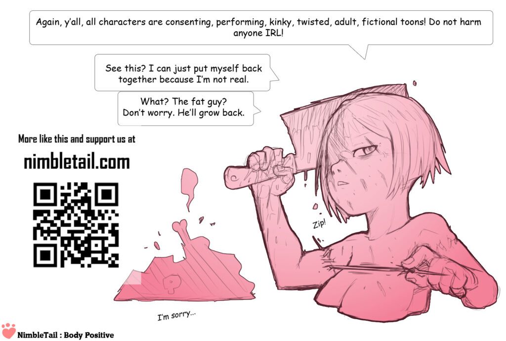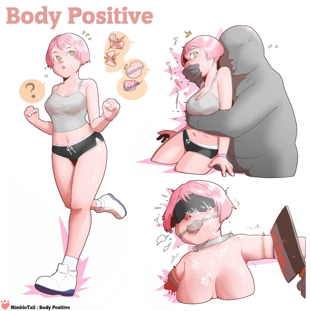(Warning: Extreme body modification!) Hi, y’all! Here’s a new set! It’s about some cartoonishly toxic body positivity and it’s quite extreme^^” So we’re not doing a shout out on this one^^” Let me know what you think!
