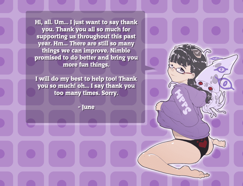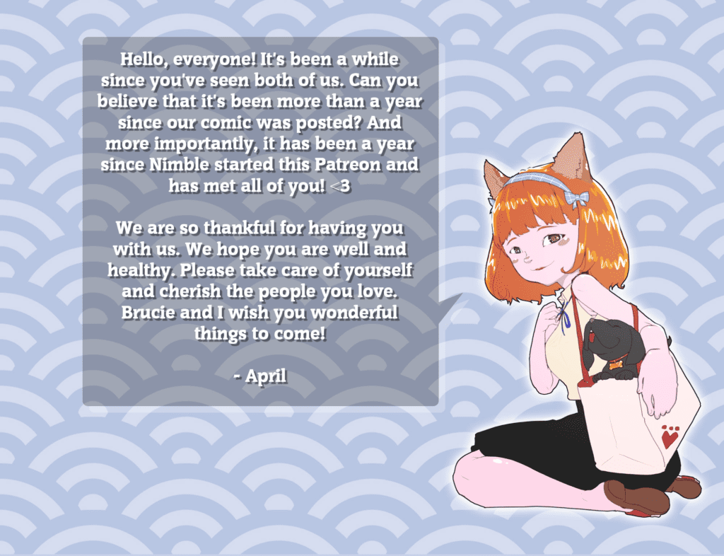 By Nimble 0 Comment It’s been a year! NimblePost (This was for our one year on Patreon)Pets + Girls <3 The girls have something to tell you 😉 +1