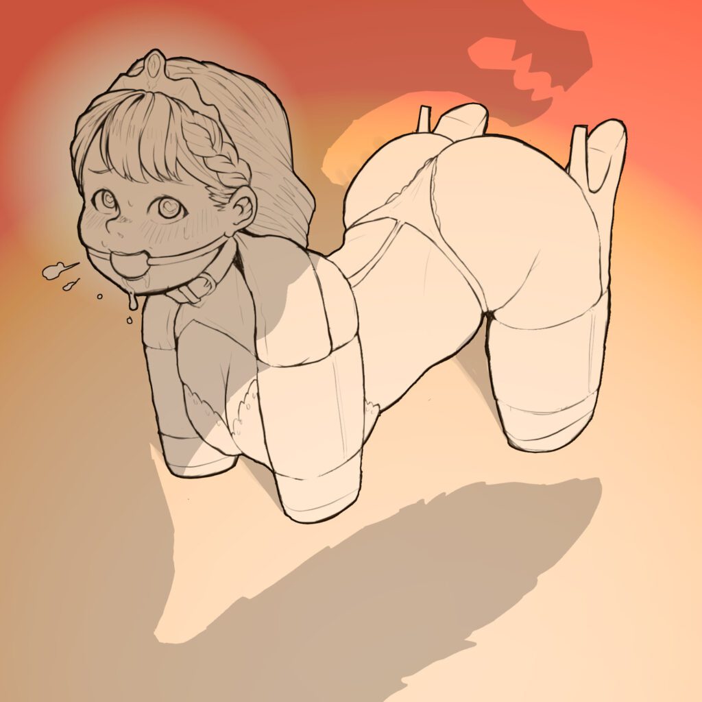 A queen “volunteering” to become the pet of a dragon to save her loving subjects. She seems excited about the ordeal though 🙂