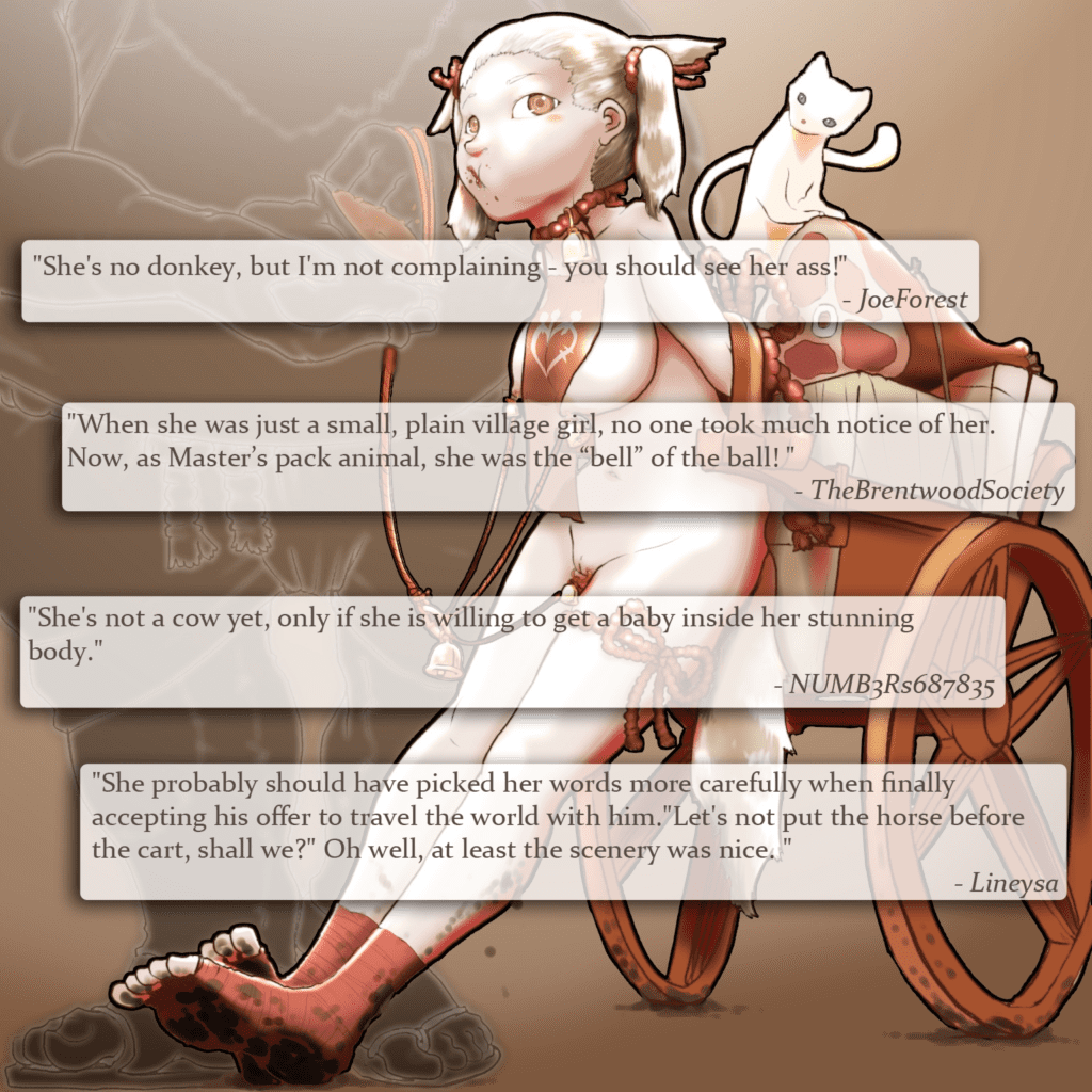 Anyone wanna give this cow/pony/donkey/whatever-girl and her traveling companions a caption? ๐