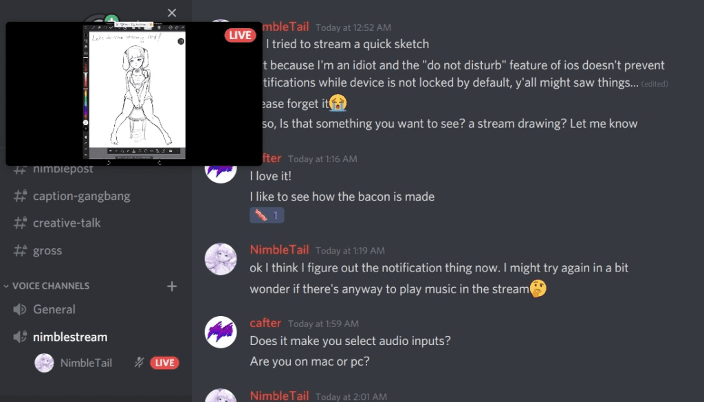 Testing out my first sketching stream just now. Don’t know if it’s something y’all are into or not, but I might do it more in the future^^